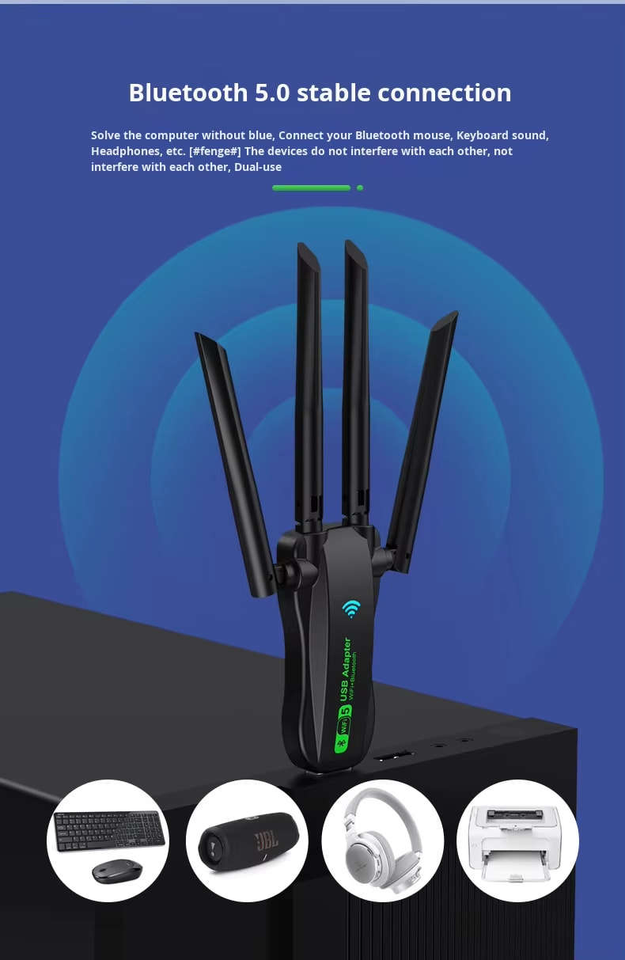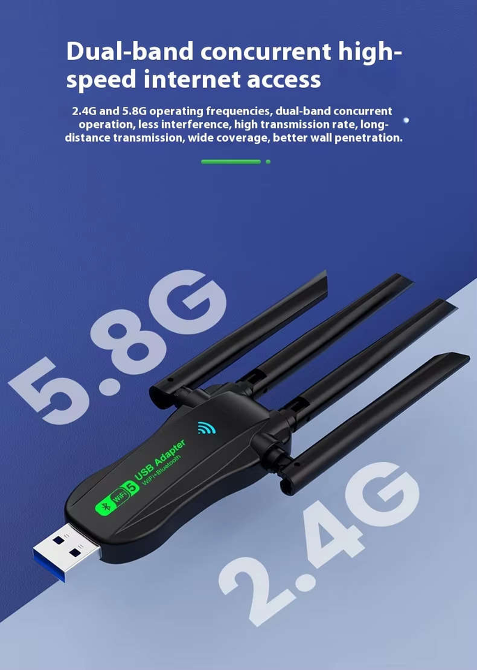 Adaptador WiFi de doble banda, 1300Mbps, USB 3,0, con Bluetooth 5,0, 4 antenas externas, tarjeta de red inalámbrica de alta velocidad para PC de escritorio