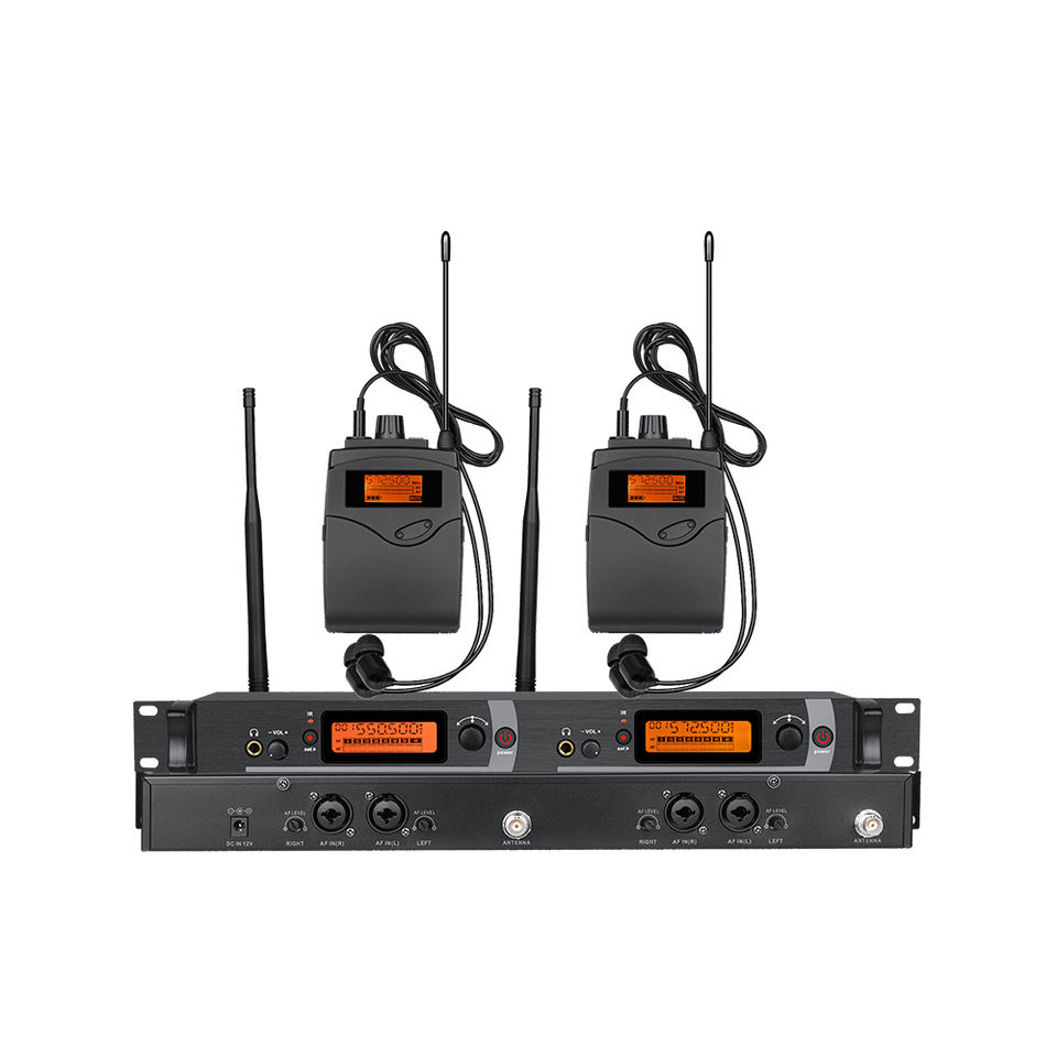 Sistema de Monitoreo Inalámbrico de Doble Canal, Receptor de Bodypack Estéreo Anti-Interferencia para Audio de Iglesia