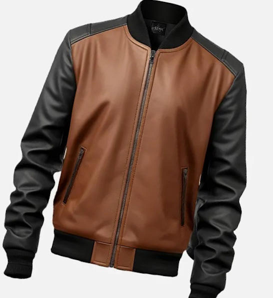 Chaqueta de cuero Bomber de hombre de dos colores con cierre de cremallera Estilo de invierno informal Acabado