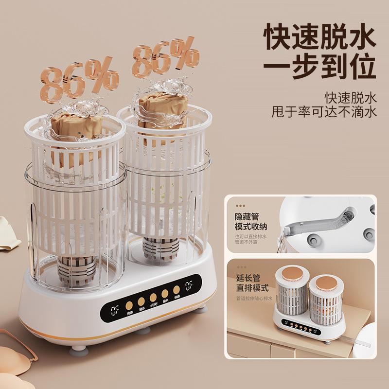 Mini lavadora de doble compartimento con taza de limpieza para ropa interior y calcetines, lavadora eléctrica portátil con extractor.