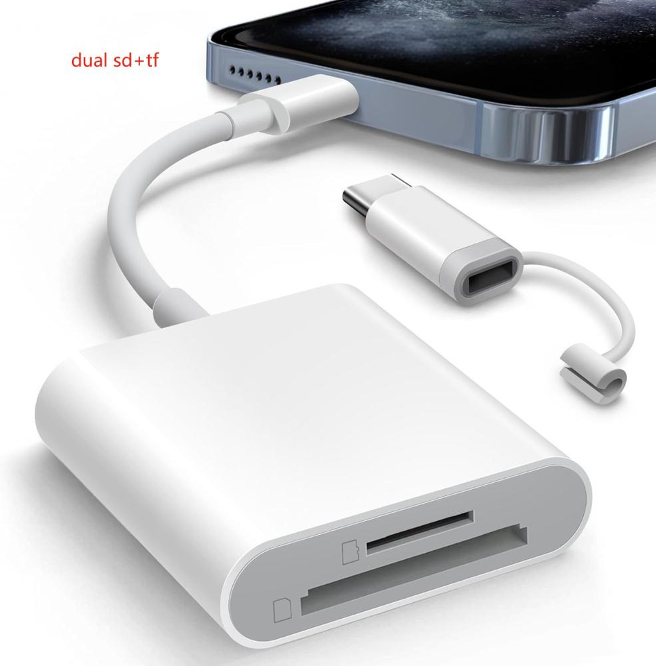 Adaptador Lector de Tarjetas de Memoria SD TF 2 en 1 OTG con Conectores Dobles USB Tipo C, Blanco, para iPhone, iPad, Teléfonos y Android