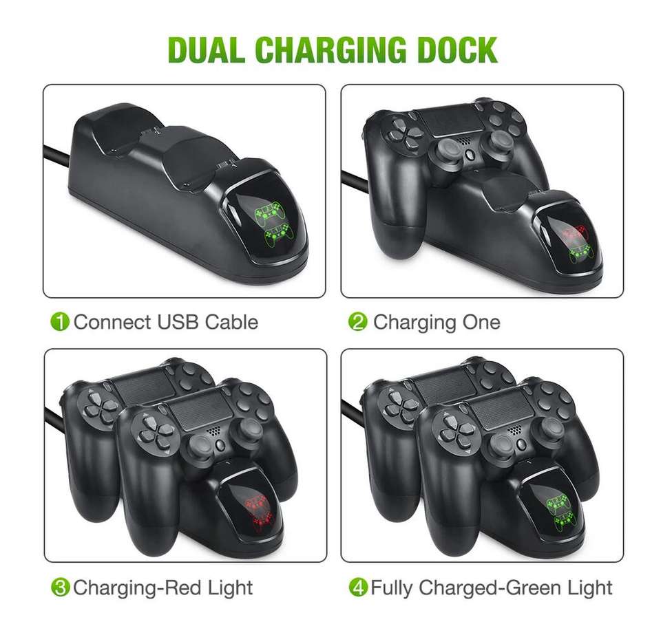 Cargador de controlador dual para PS4 Slim Pro Estación de carga rápida USB con indicador LED para Playstation 4 Dualshock 4 Gamepad