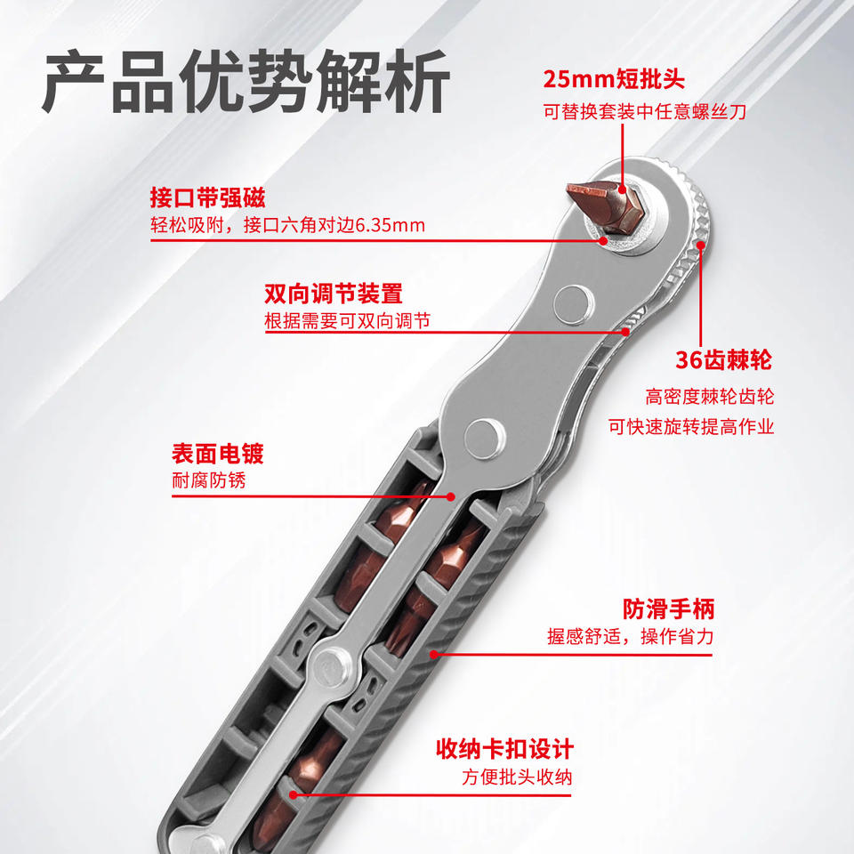 Juego de destornilladores de trinquete de doble dirección, mango magnético antideslizante con puntas hexagonales, herramientas de reparación para el hogar Myj 05