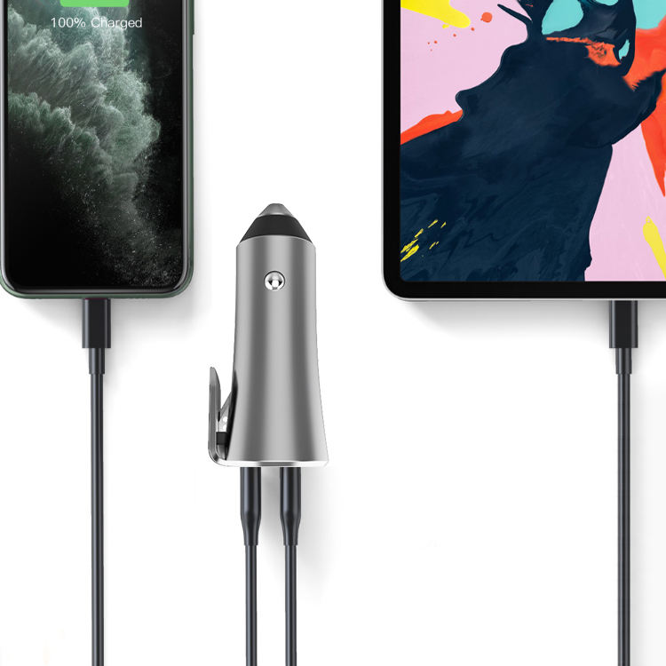 Product name:Dual PD 27W USB Car Charger with Safety Hammer