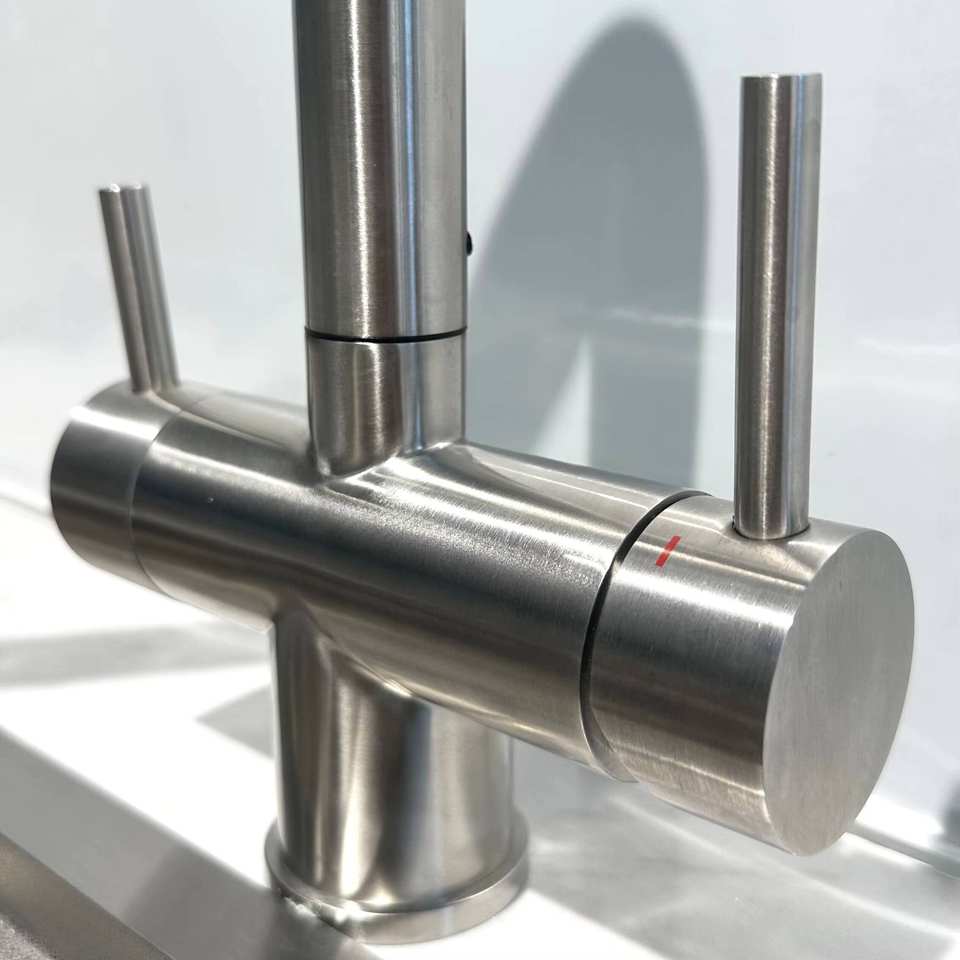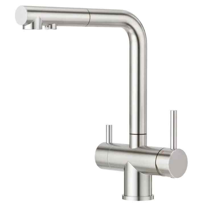 Grifo Mezclador de Cocina de 3 Vías con Doble Manija, Monomando, Extraíble, para Agua Fría y Caliente, con Filtro y Rociador Jet