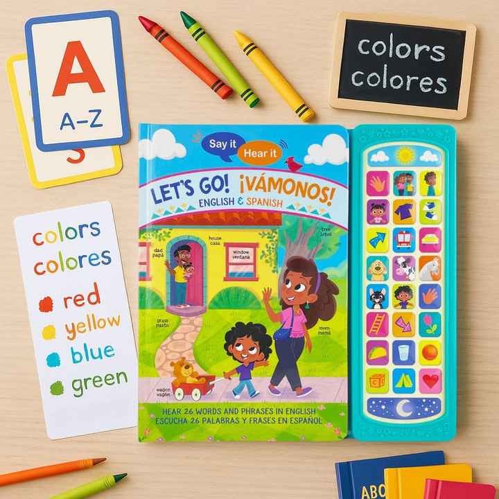 Idioma dual Inglés y Español Primeras palabras Botón de sonido programable Libro Aprendizaje inteligente para niños y niños en edad preescolar