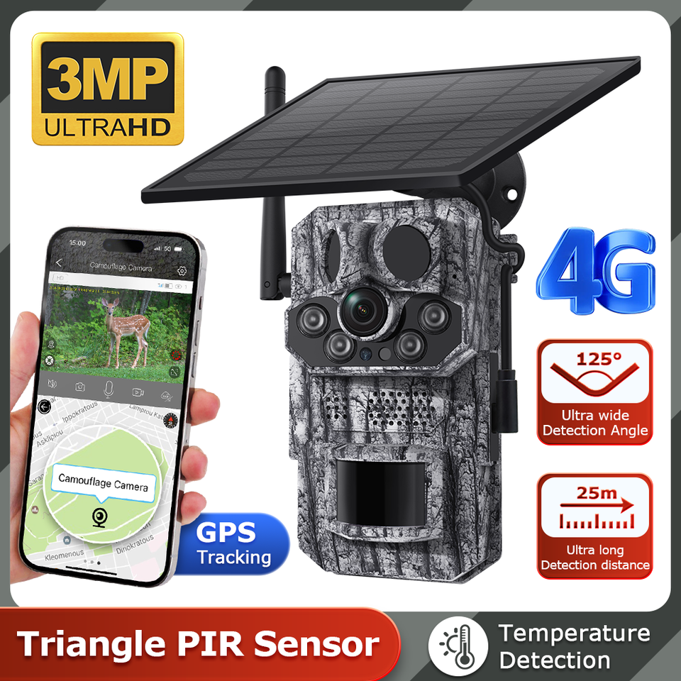 Cámara de Vigilancia con Doble Lente de 4MP CMOS, Posicionamiento GPS, Visión Nocturna, Energía Solar, Red 4G LTE, Audio Bidireccional, Resistente al Agua IP65, Nube