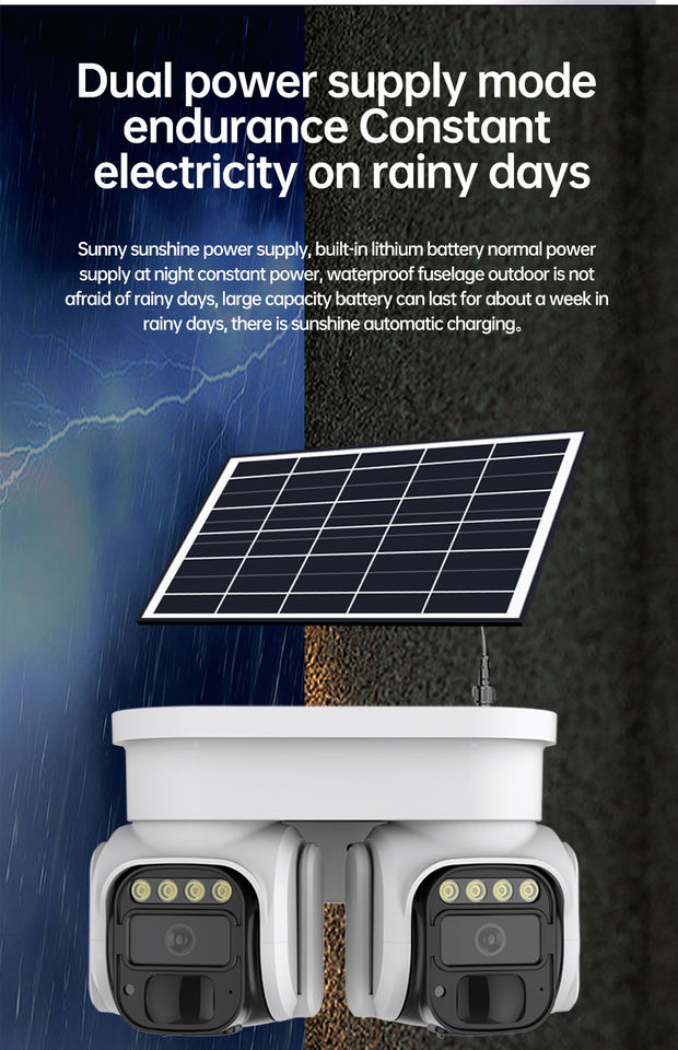 Cámara solar para exteriores de doble lente, resolución de 2MP, IP 65, impermeable visión nocturna, versión 4G, almacenamiento de datos en la nube, gran angular bidireccional