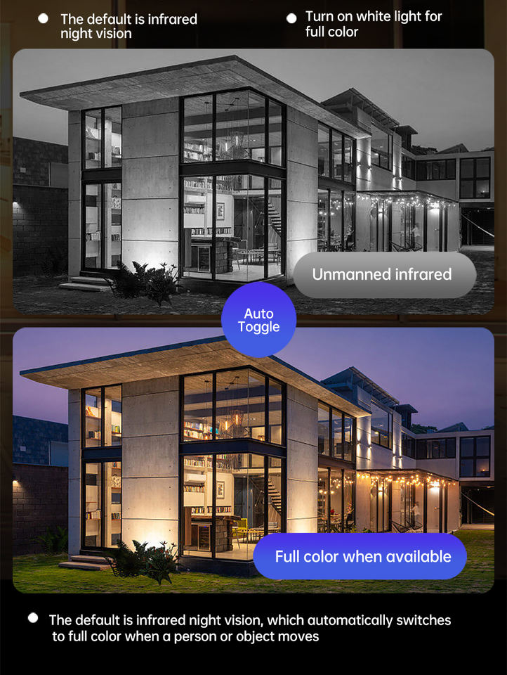 Humanos de seguimiento de movimiento, Visión nocturna, Detección de movimiento, Impermeable / a prueba de mal tiempo, De Audio de dos vías