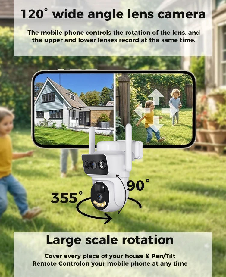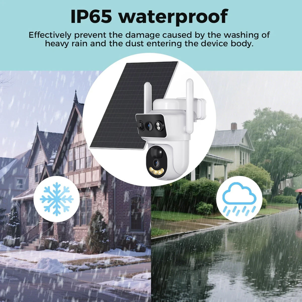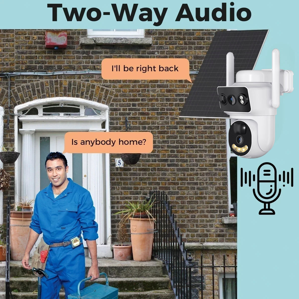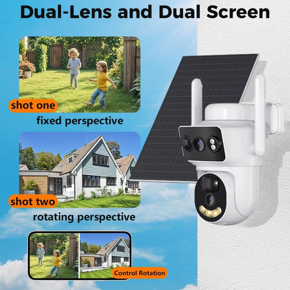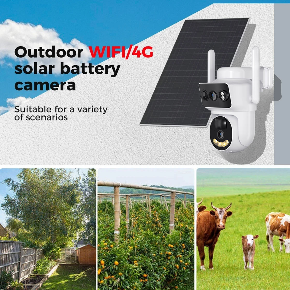 Cámara Solar Exterior de Doble Lente con Tarjeta SIM 4G, Visión Nocturna en Color PIR, Cámara de Seguridad Inalámbrica con Energía Solar y Batería