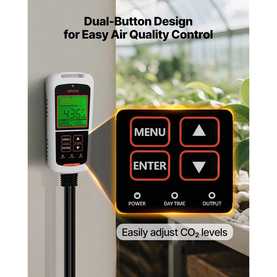 Controlador de Monitor de Dióxido de Carbono con Doble Salida y Detección de Día/Noche, Sensor de Calidad del Aire