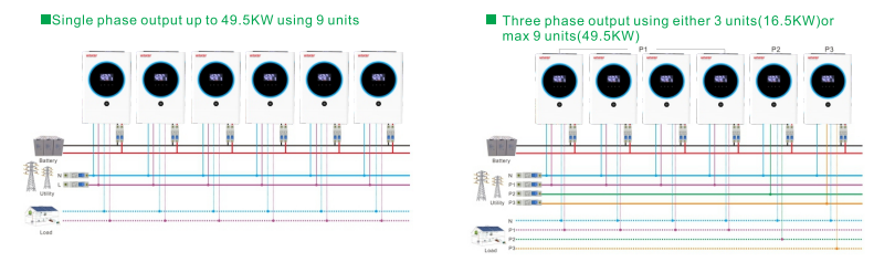 Salidas duales Diseño RGB 4kw 6kw 8kw 11kw con energía de inversor híbrido MPPT