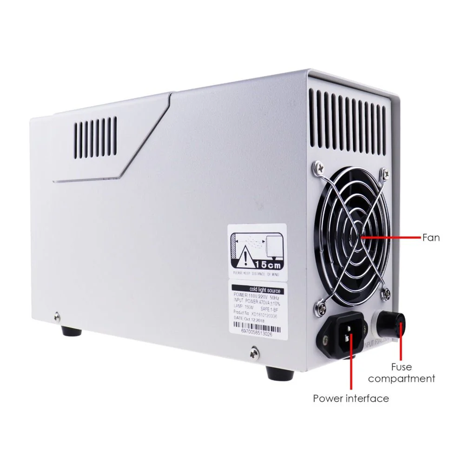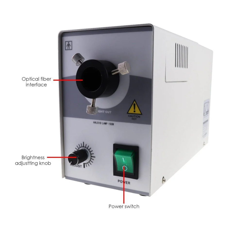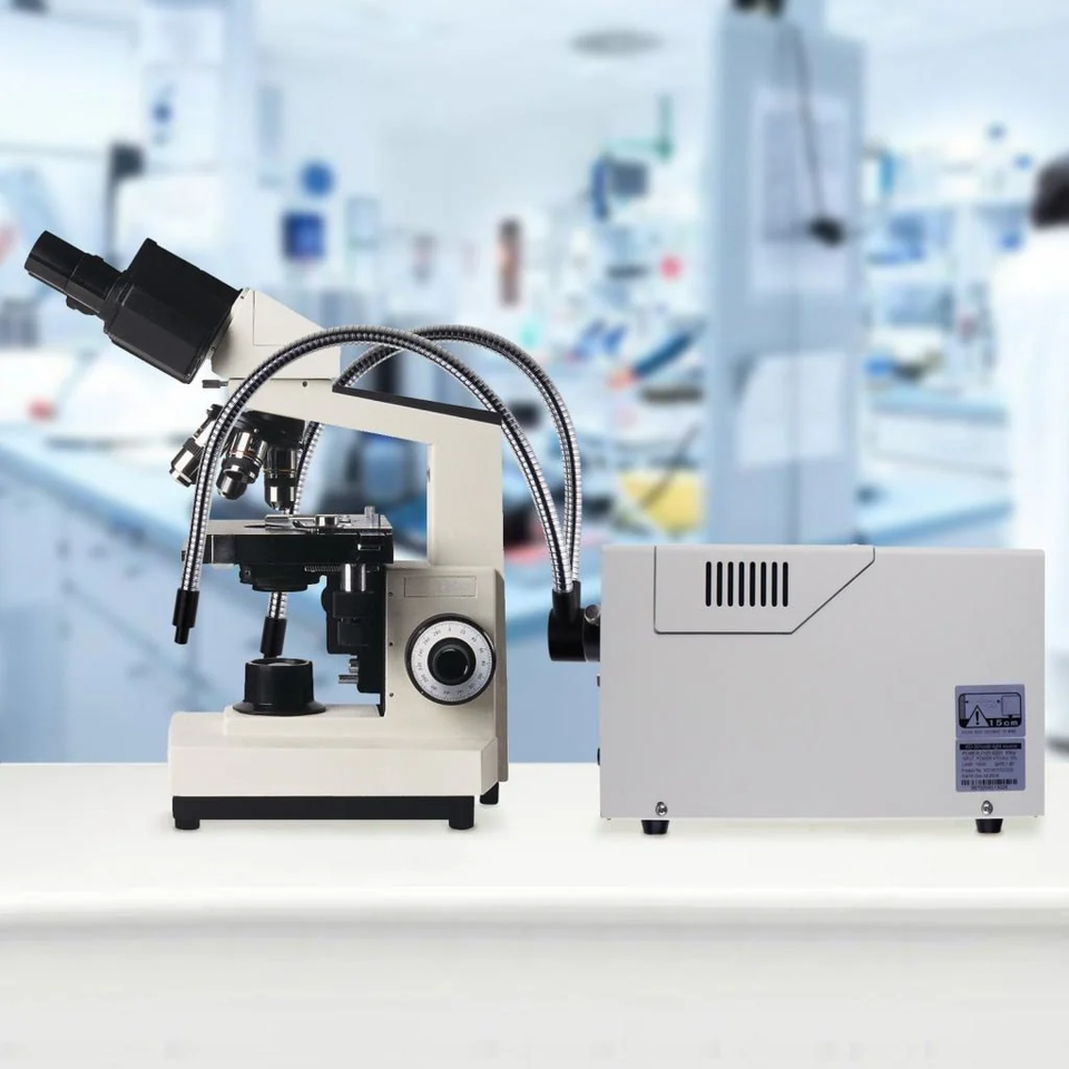 Iluminador de microscopio de fibra óptica de doble tubo con cuello de cisne y BRILLO AJUSTABLE + Bombilla halógena de cuarzo de 24V 150W 3200K