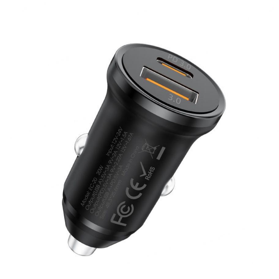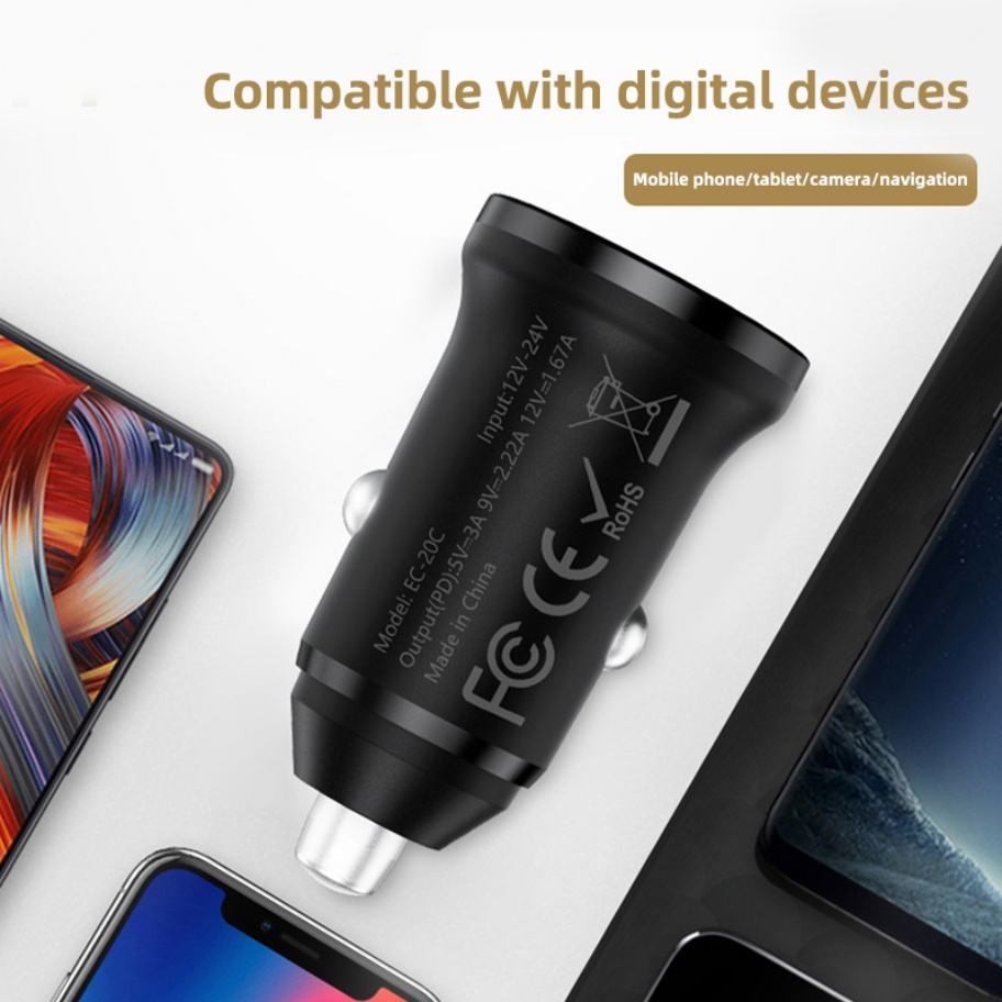 Cargador de Coche Portátil Mini con Doble Puerto y Carga Rápida Multifunción PD20W, Accesorios de Carga Tipo C