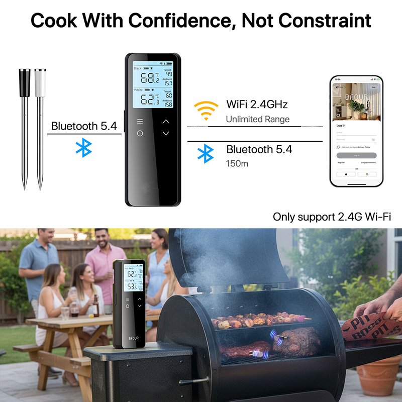 Dual Probe WiFi Bluetooth Wireless Meat Thermometer with Smart App