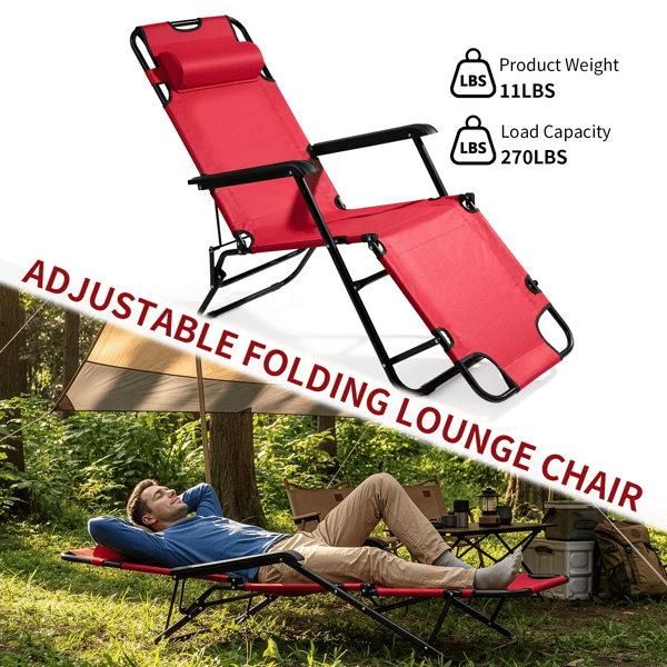 Silla Plegable Reclinable Extensible Roja Portátil de Doble Uso