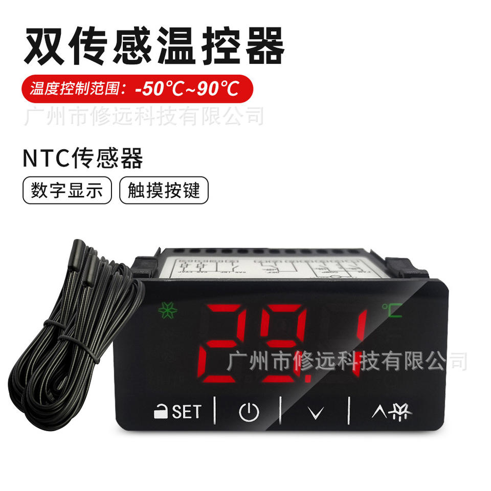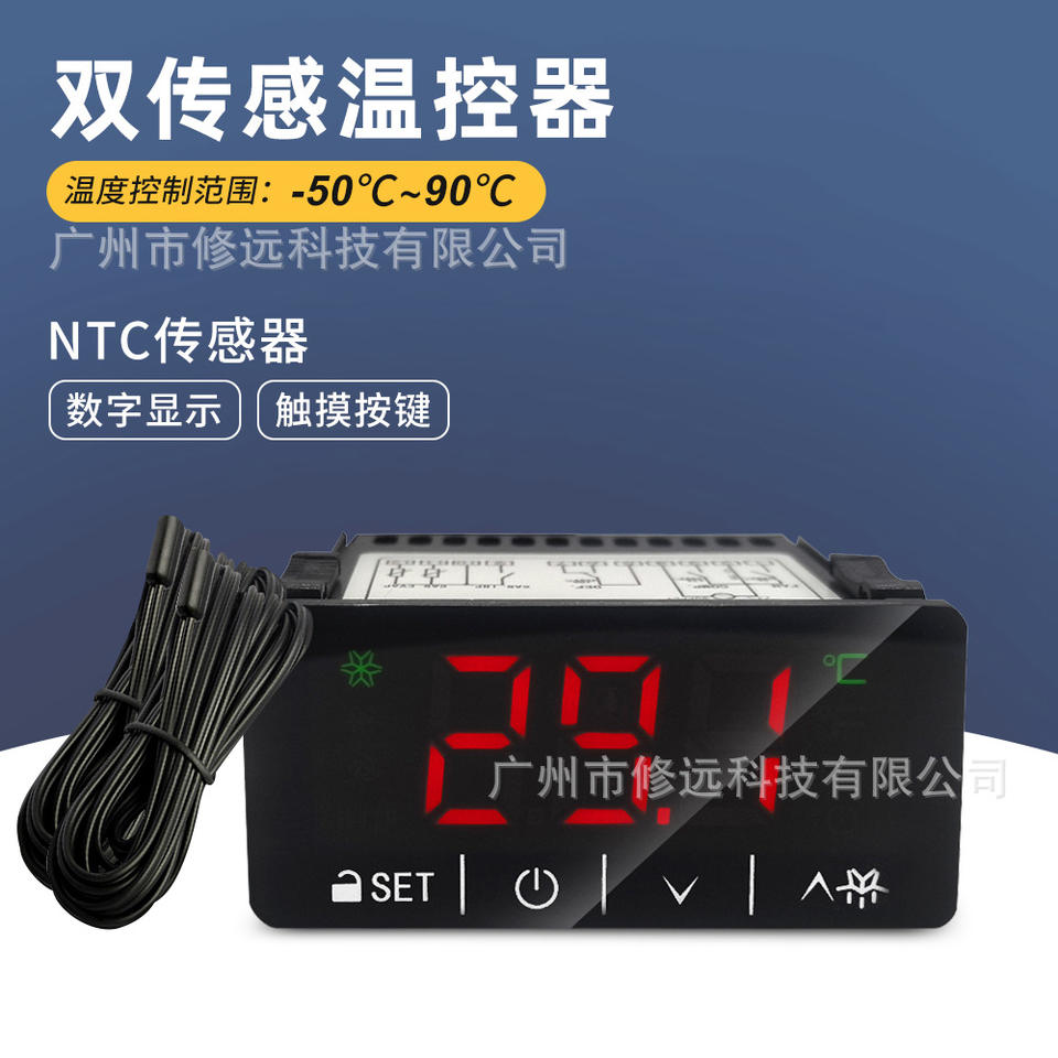 Controlador de Temperatura de Doble Sensor 3B21 23 NTC con Pantalla Digital y Teclado Táctil para Camiones Refrigerados, Calefacción y Refrigeración