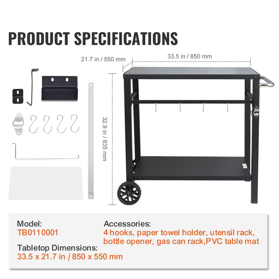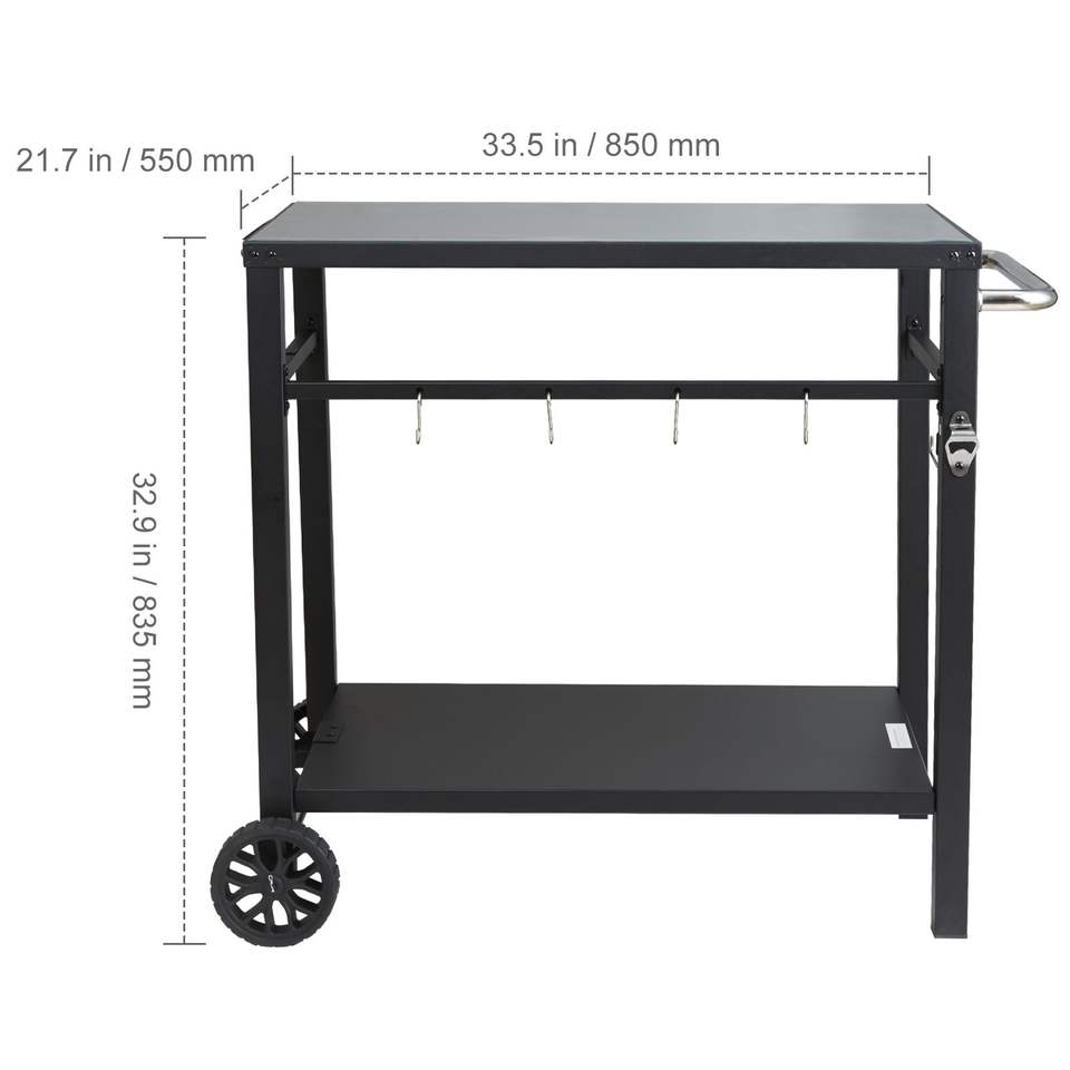 Carrito Modular de Doble Estante para Exteriores, para Asar a la Parrilla, Mesa Portátil para Preparación de Alimentos, Mesa Multifuncional con Superficie de Hierro para Acampar