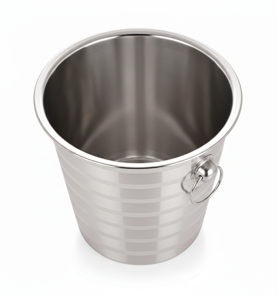 Cubo Multiusos de Acero Inoxidable con Doble Asa, Acabado Espejo Cromado, Capacidad de 3L, Apto para Contacto con Alimentos, Ecológico, para Fiestas