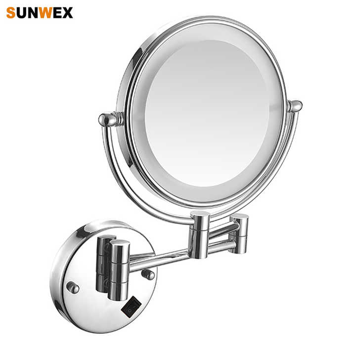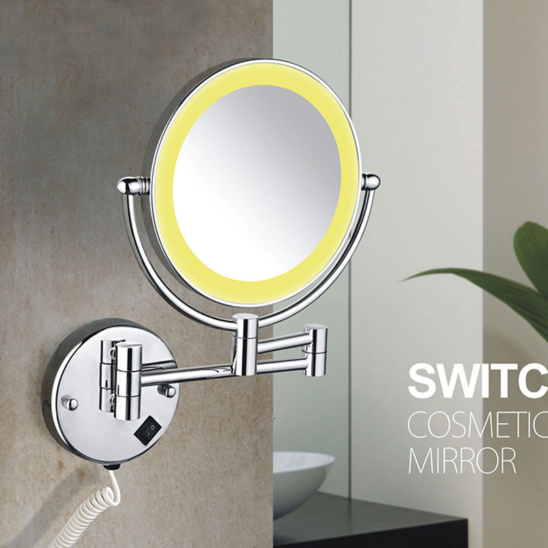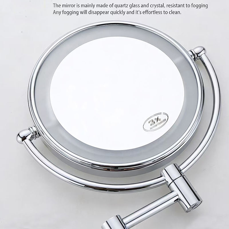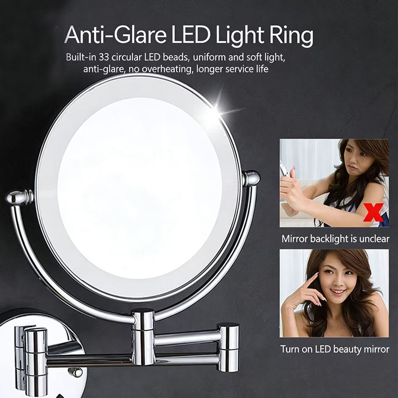 Espejo de Ducha LED de Doble Cara con Rotación de 360 Grados, Espejo Cosmético Moderno Iluminado para Maquillaje y Afeitado
