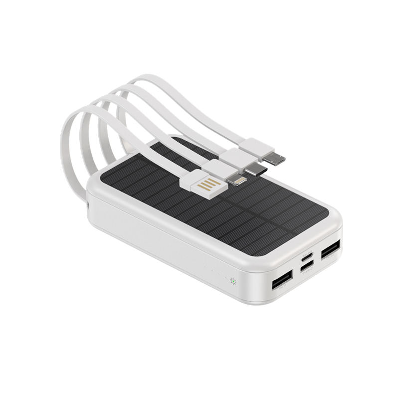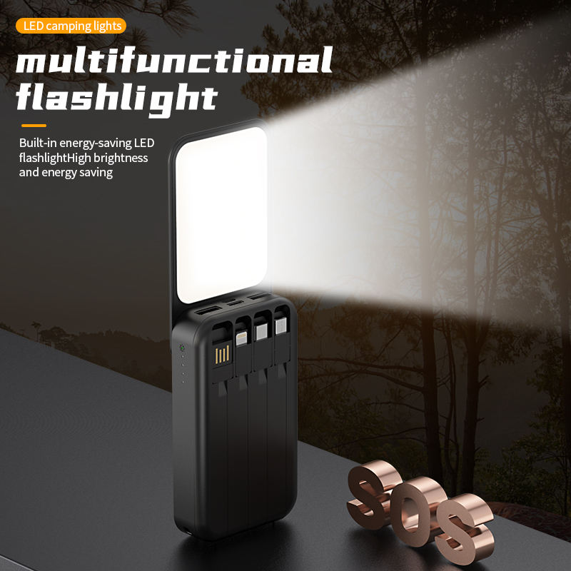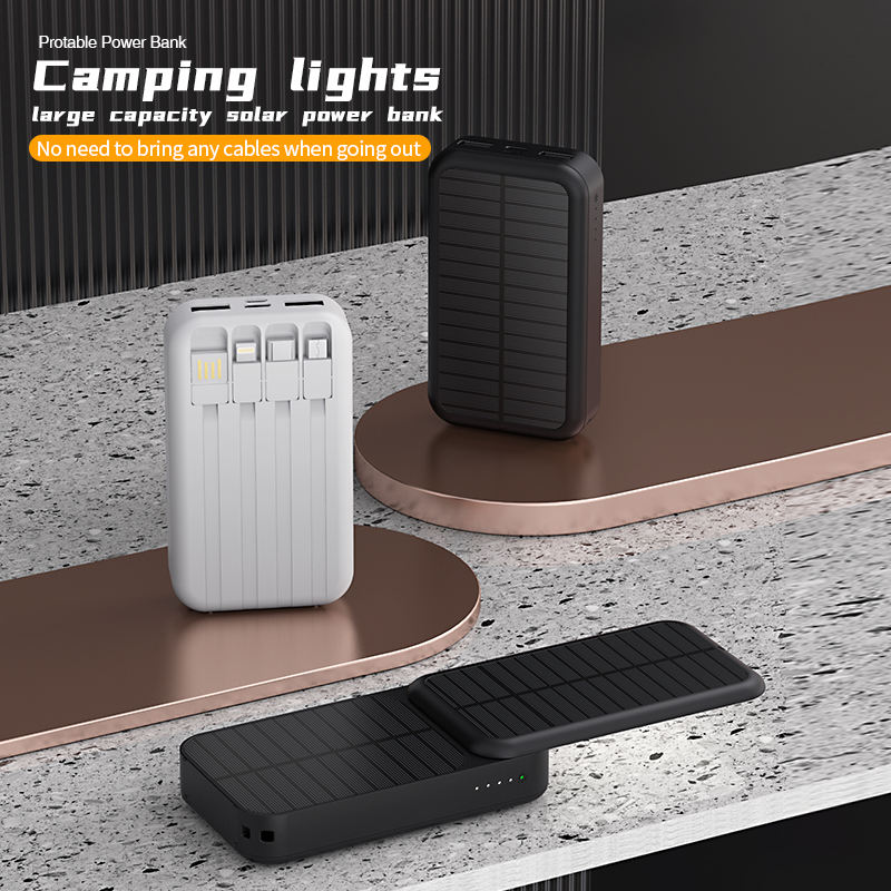 Paneles solares duales 10000mAh Banco de energía portátil de carga rápida Incorporado 4 cables de carga para diseño de luz de camping al aire libre