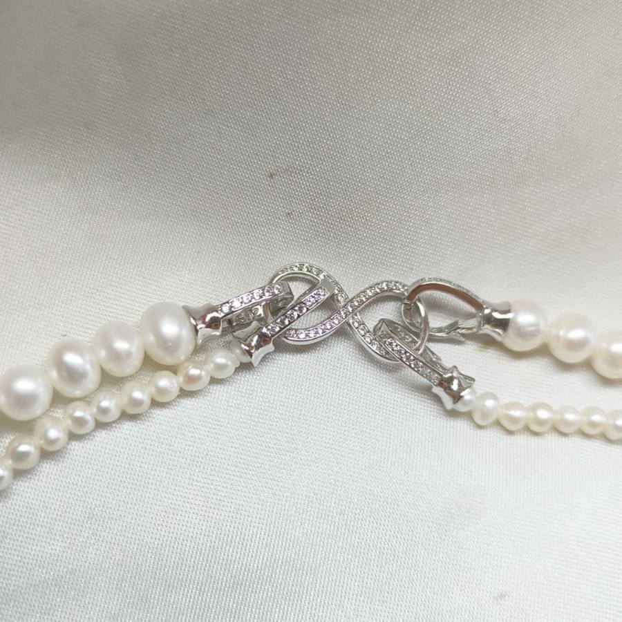 Collar de Perlas de Agua Dulce de Doble Hilo, Versátil, con Cuentas Grandes y Pequeñas de 3-4 mm y 6-7 mm, Collar Multifuncional