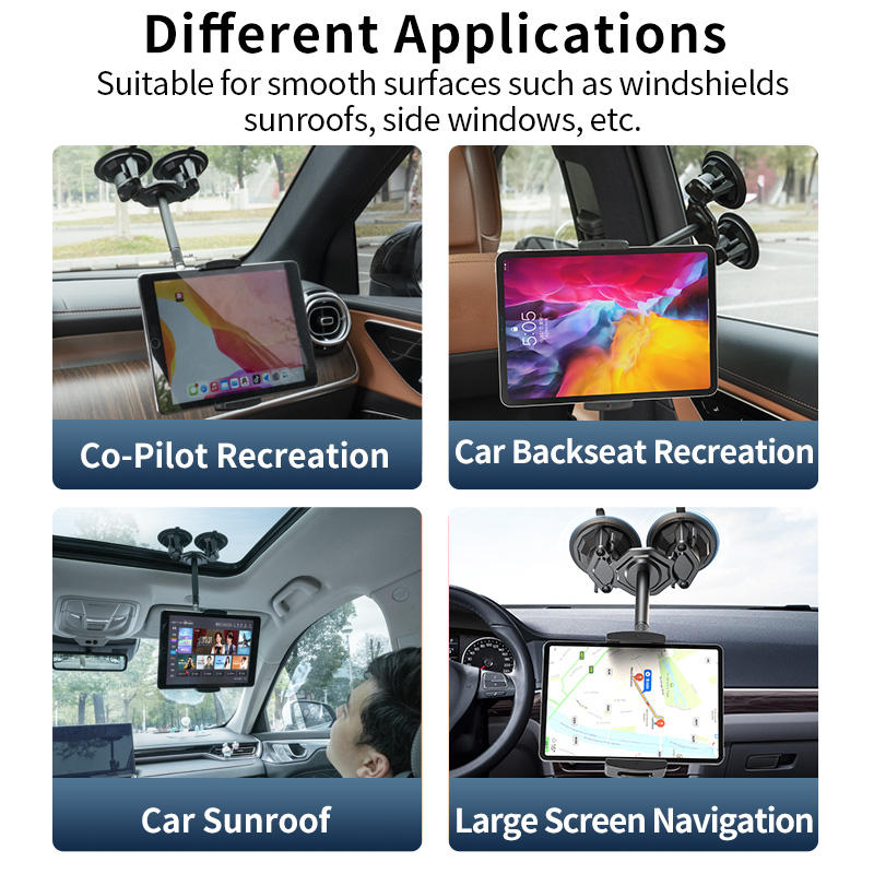 Soporte de ventosa doble para tableta, PC, navegación, vídeo, soporte para iPad, 4-12,9 pulgadas, teléfonos, tabletas, soporte para coche