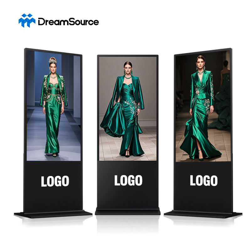 Señalización Digital de Doble Sistema, Pantalla Comercial de 55 Pulgadas con Soporte de Piso para Interiores, Reproductor Multimedia OEM ODM, Equipo 2K para Centros Comerciales