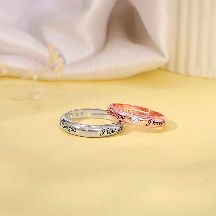 Doble tono 'I Love You' Anillos finos Bandas de pareja elegantes