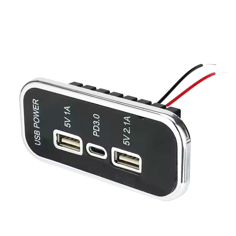 Type:Dual USB A + Type C PD3.0 Flush Mount Charger for 12-24V Vehicles