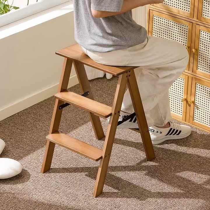 Escalera Plegable de Bambú de Doble Uso, Tres Peldaños, Banco para Subir, Organizador de Almacenamiento para Dormitorio, Diseño Moderno