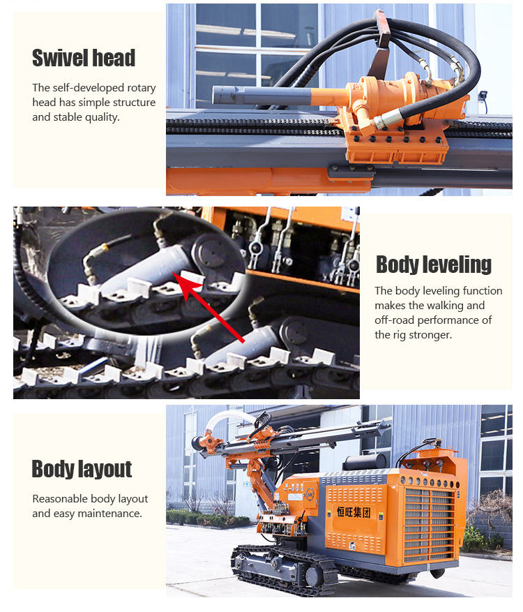 Perforadora de impacto de doble modo con espiral, de alto torque y alta resistencia, sobre orugas, para construcción de pilotes en múltiples terrenos.
