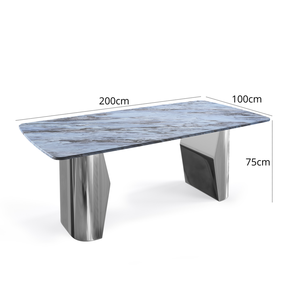 Mesa de Comedor Moderna de 200 cm con Base de Acero Inoxidable y Tapa de Mármol, Diseño para 6 Personas, Dubai