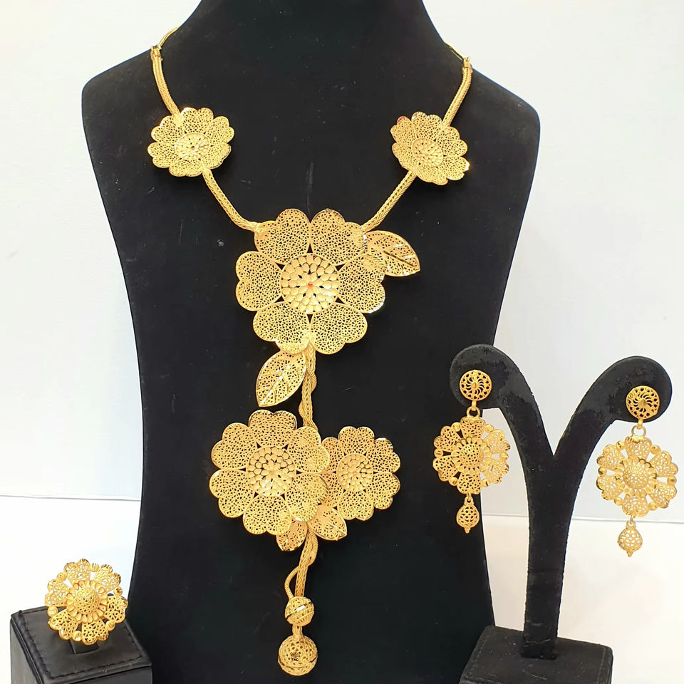 Conjunto de joyas:Pendientes+Collar+Anillo+Pulsera