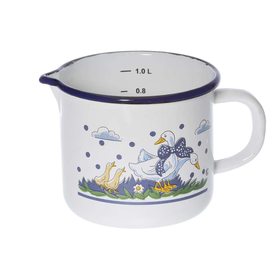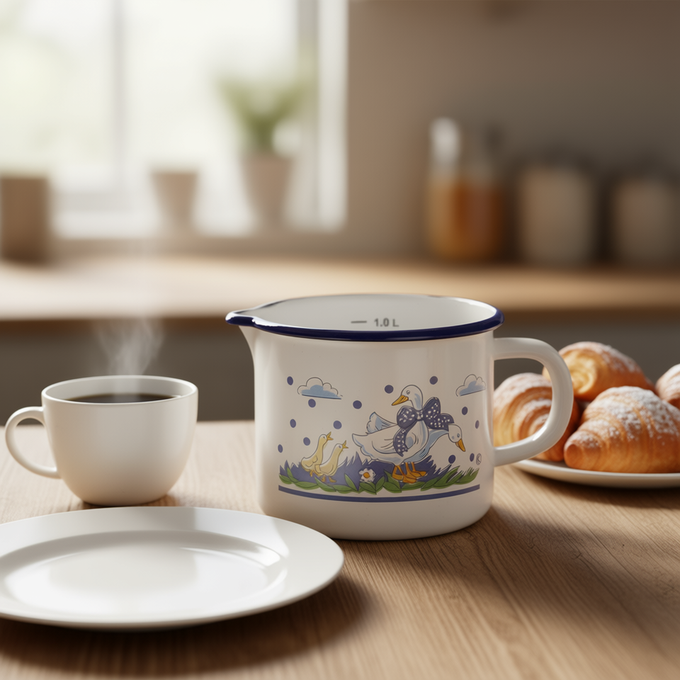 Jarra para Leche con Diseño de Pato, 1.0 L, Porcelana Esmaltada, Jarra para Crema y Azúcar con Boquilla
