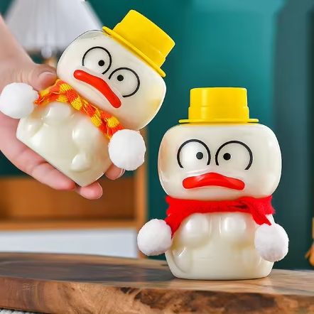 Botellas de jugo de plástico PET desechables en forma de pato con tapas Capacidad de 500ml/700ml Impresión de logotipo personalizado para agua Leche Bebida