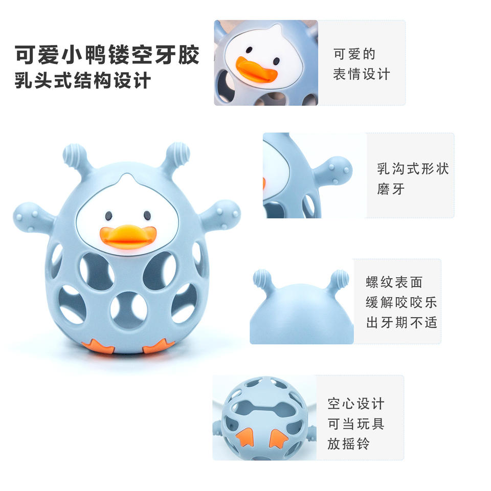 Goma de dentición de bebé de pato, campana de agitación, Bola de mano, varilla de molienda, goma de dentición de silicona para bebé, goma de dentición