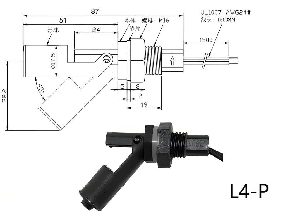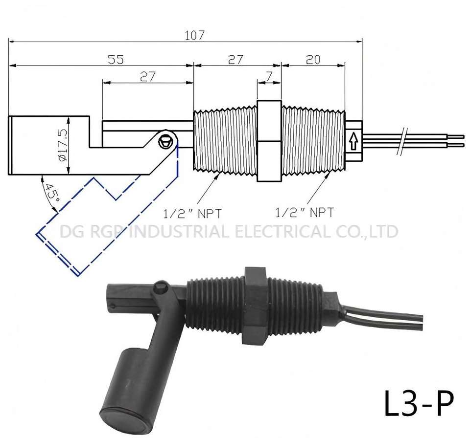 Descripción:PP Side Mount Float level switch