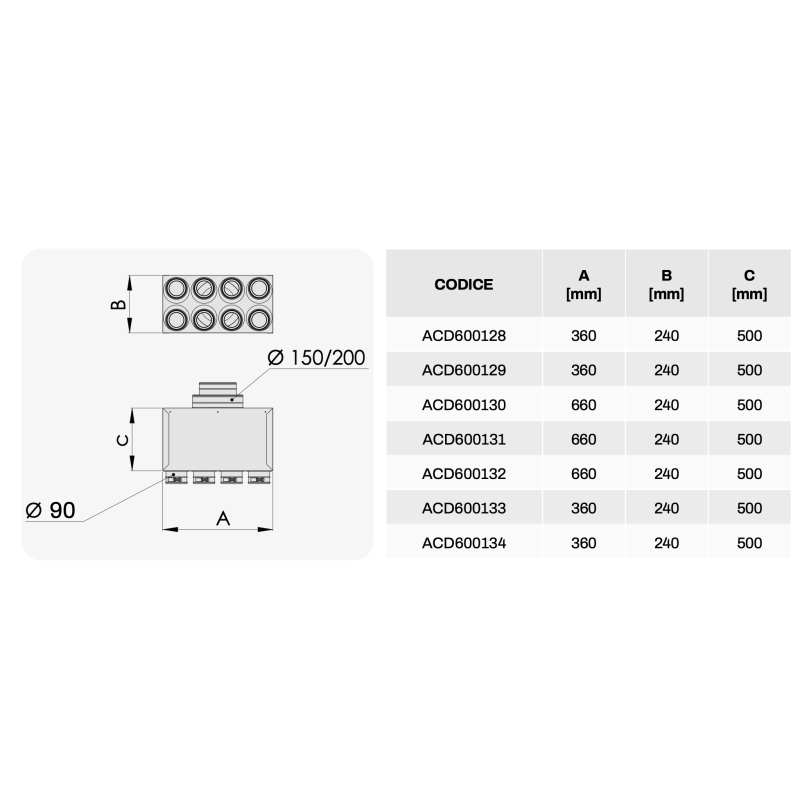Pleno de Distribución para Sistemas VMC Canalizados con 90 Salidas, Piezas de HVAC