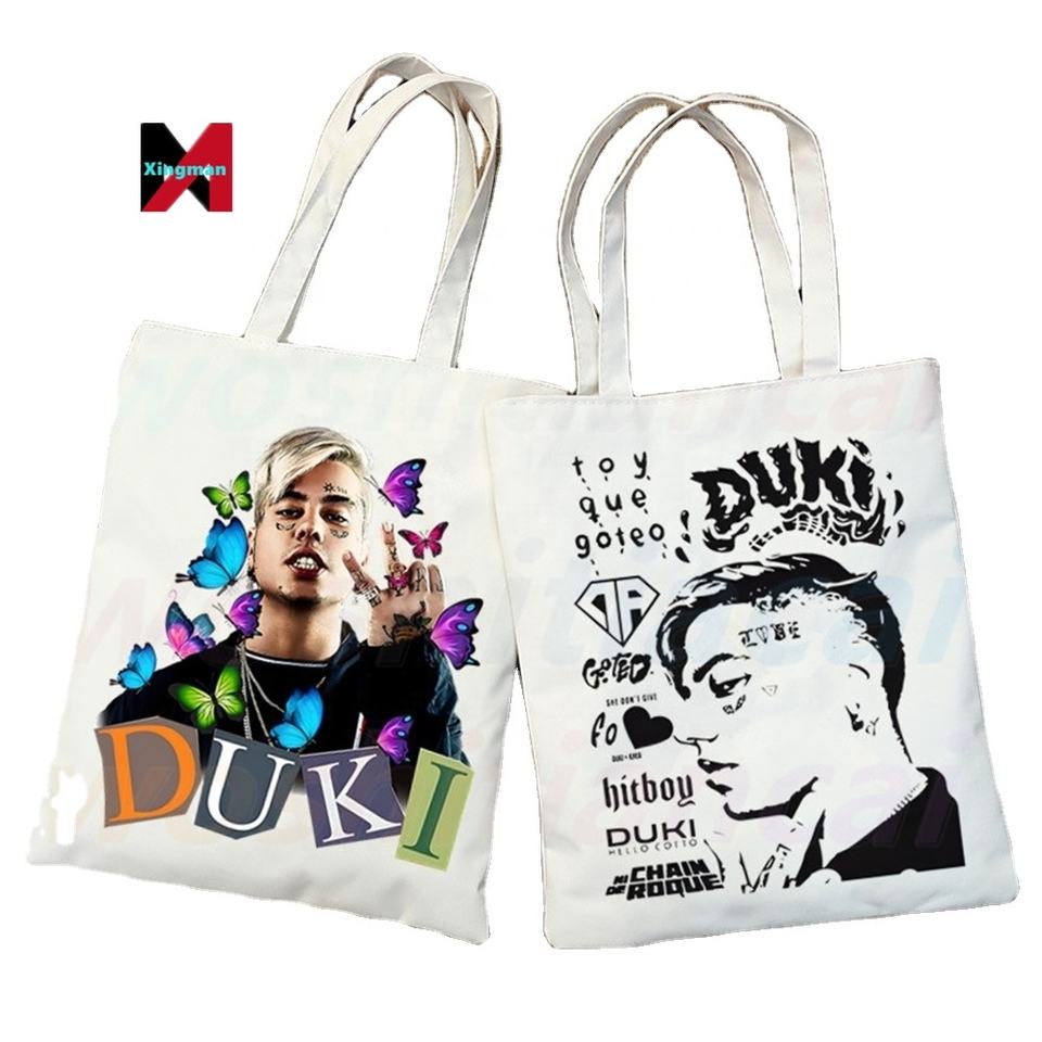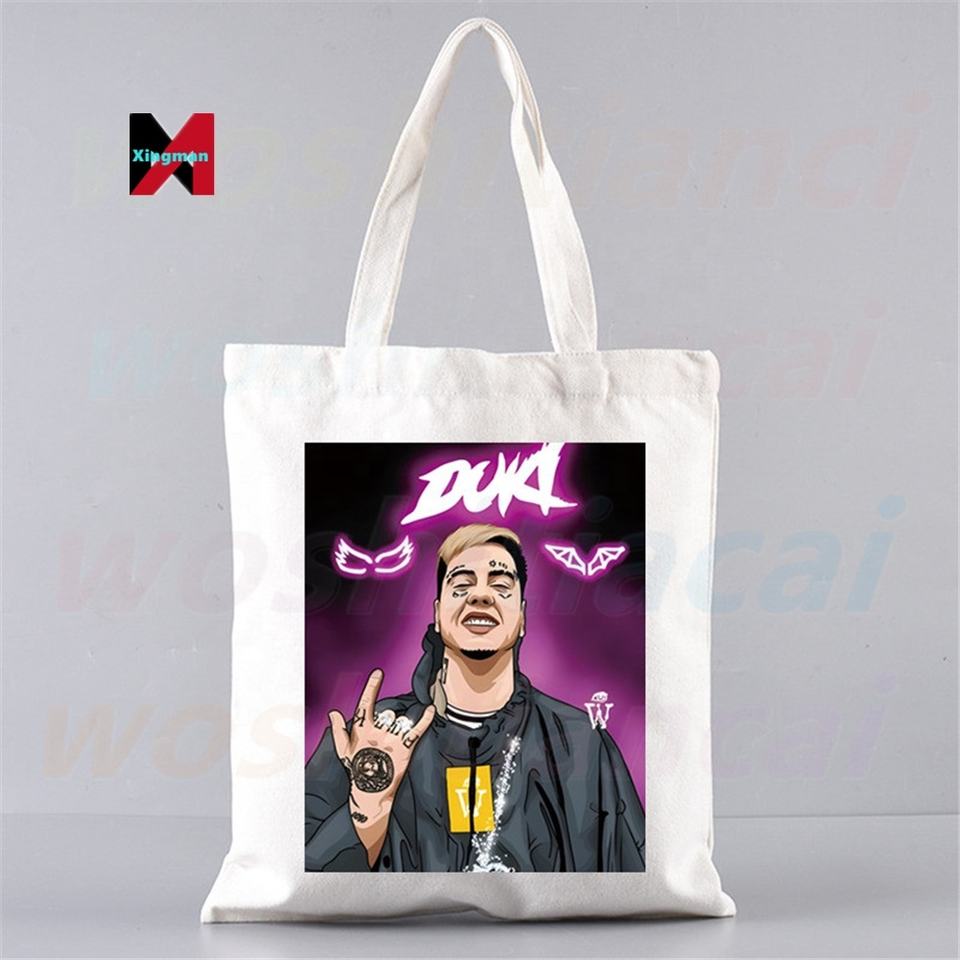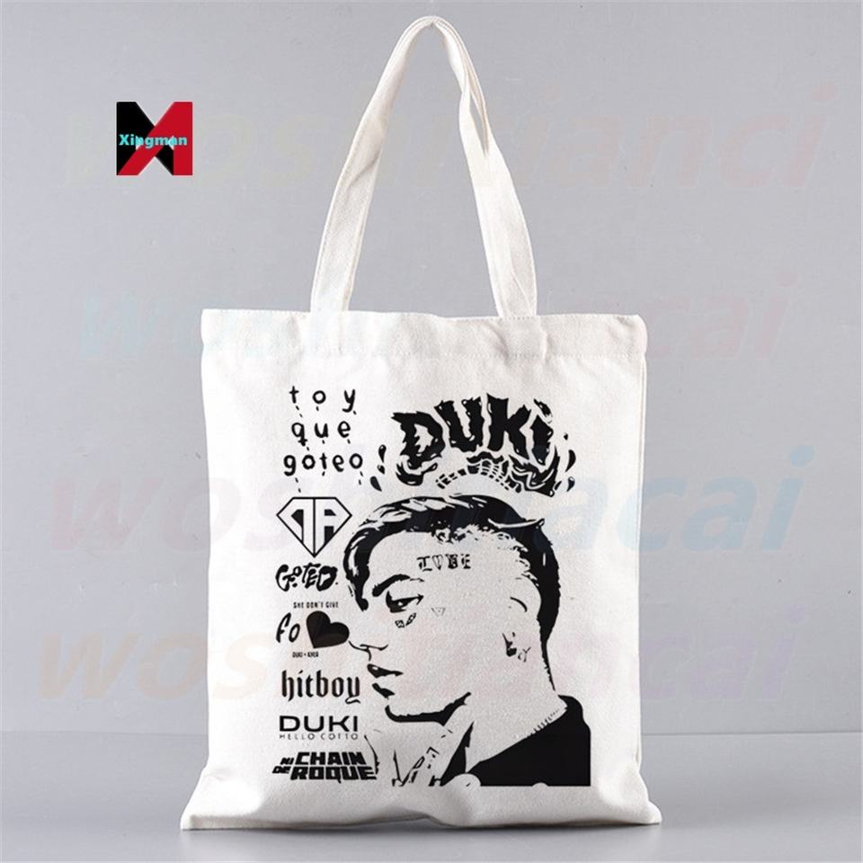 Bolsas de Compras Duki Rapper para Mujer, Bolsa Reutilizable, Bolsa de Compras de Gran Capacidad Estilo Harajuku, Estampado de Anime