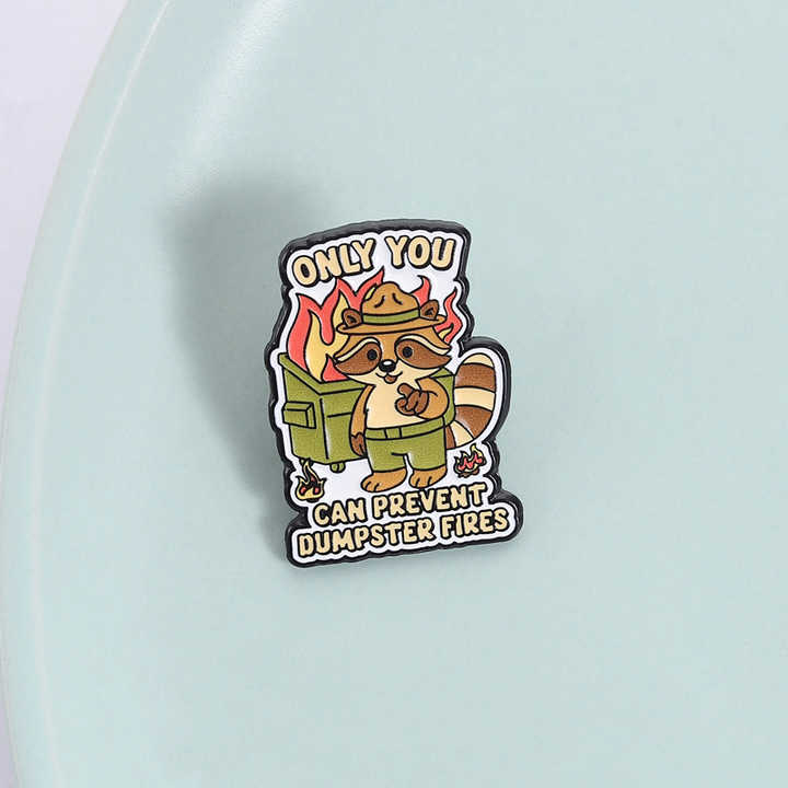 Pin de meme de incendio en contenedor de basura, solo tú puedes detenerlo, broche con diseño de Ranger Mapache, accesorio para uso diario, regalo de humor de internet
