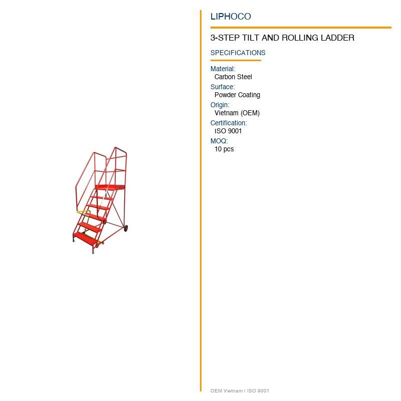 Dup_LP0125 Escalera Inclinable y Rodante de 3 Pasos Directa de Fábrica para Plataforma de Acero y Estanterías de Entrepiso