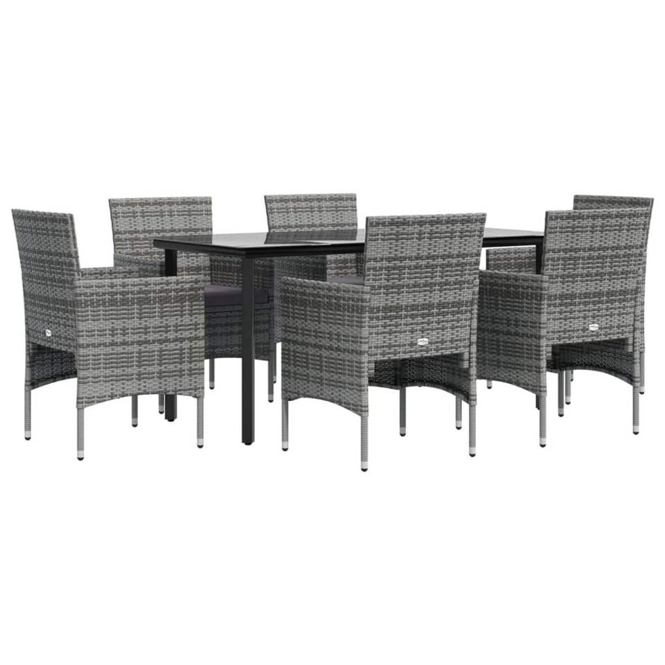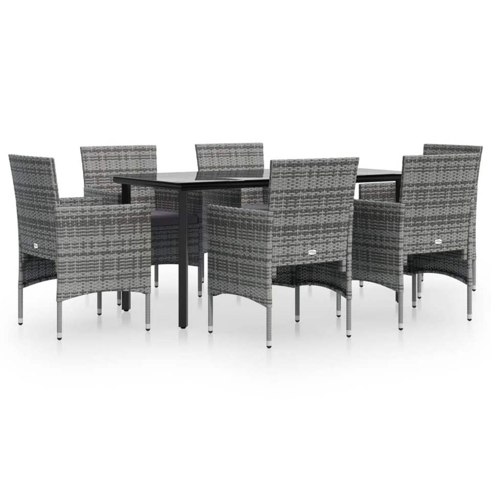 Juego de Comedor de Jardín de 7 Piezas en Poliratán Gris, Duradero y Elegante