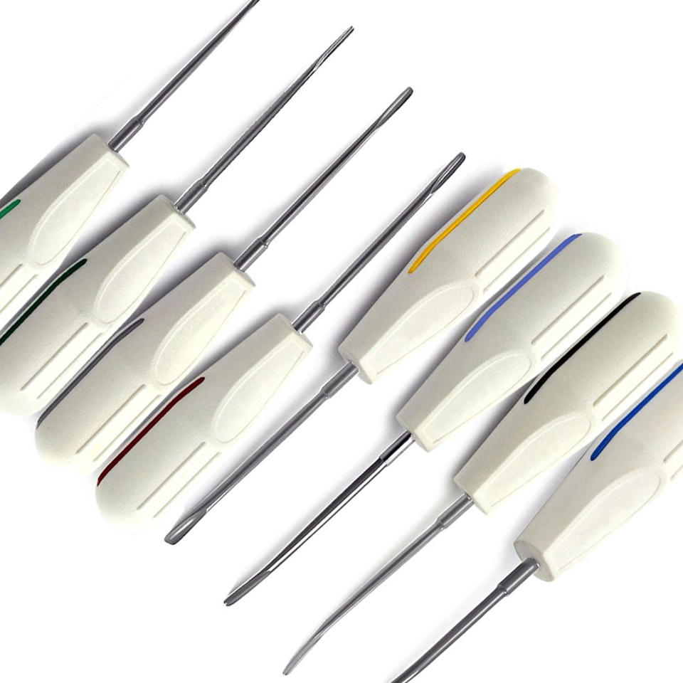 Juego de 8 Elevadores de Raíces Manuales Duraderos, Instrumentos Quirúrgicos Dentales para Extracción de Dientes, Acero Inoxidable de Grado Médico