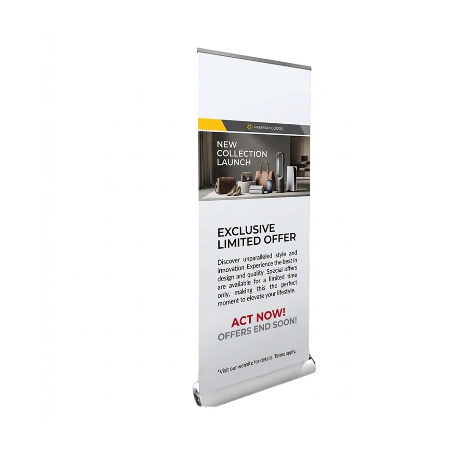 Mini Banner Enrollable A4 Resistente, Soporte de Mesa Retráctil con Impresión Digital de Alta Resolución y Colores Brillantes