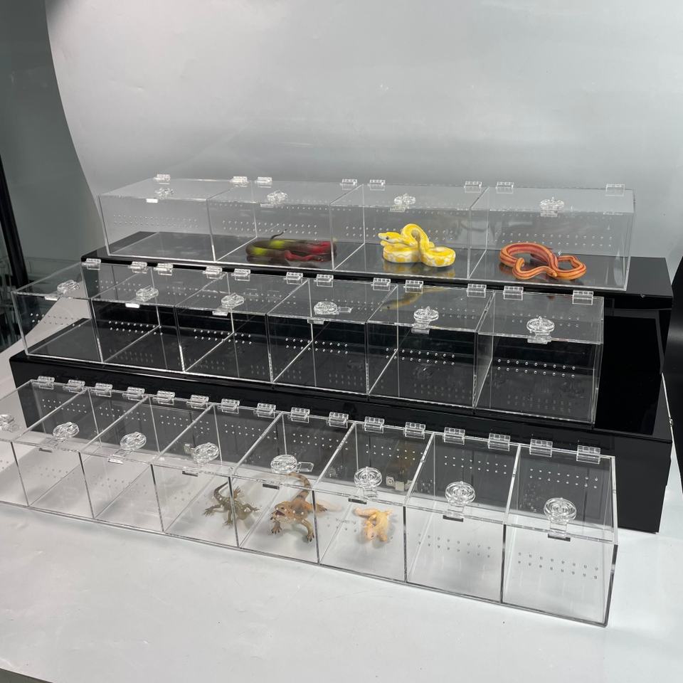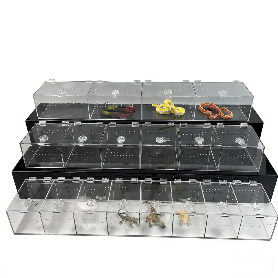 Caja de Cría de Reptiles de Acrílico Resistente, Recinto para Reptiles con Tapa, Terrario de Exhibición para Reptiles Pequeños