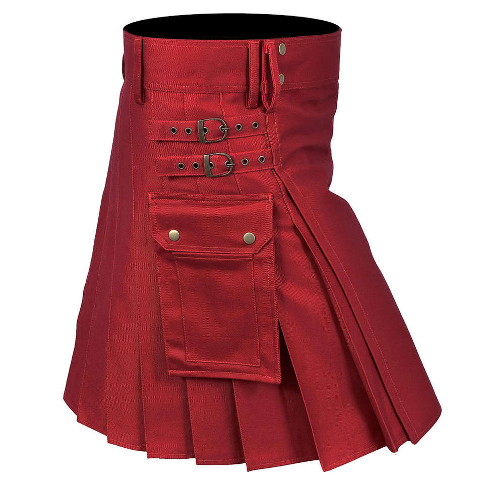 Durable y elegante Utility Comfort Heavy Quality Red Cotton Kilt para hombres para uso diario con correa ajustable