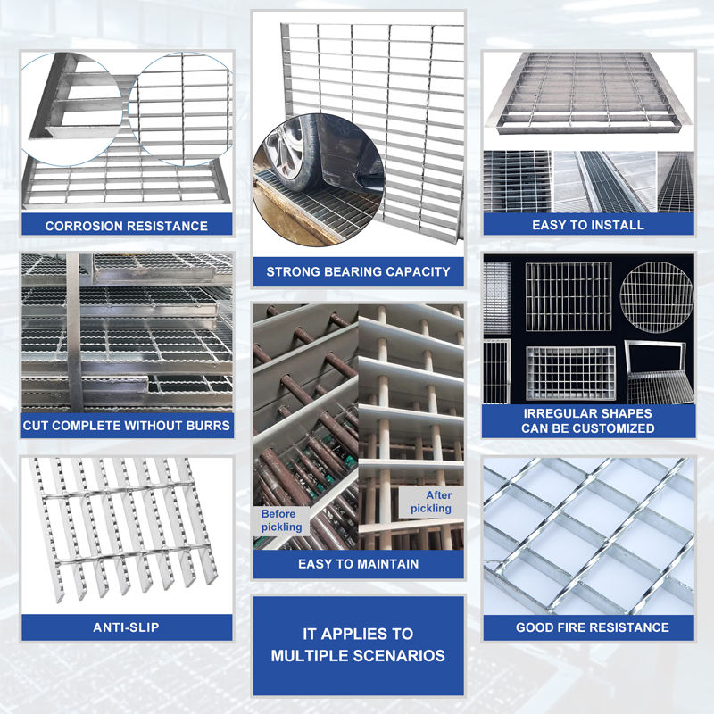 Rejilla de acero galvanizado antideslizante duradera para suelo de ganado, cubierta de canal, pasarela peatonal, parques, materiales de construcción de Metal