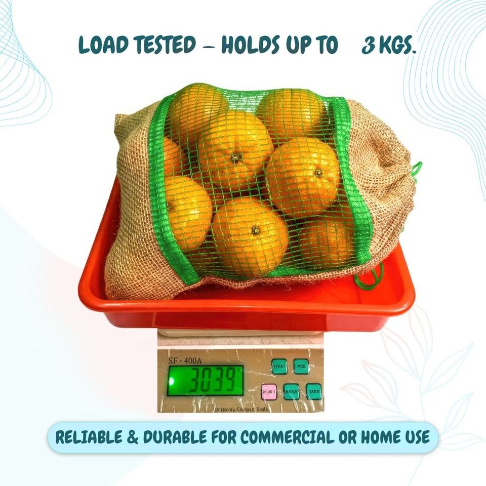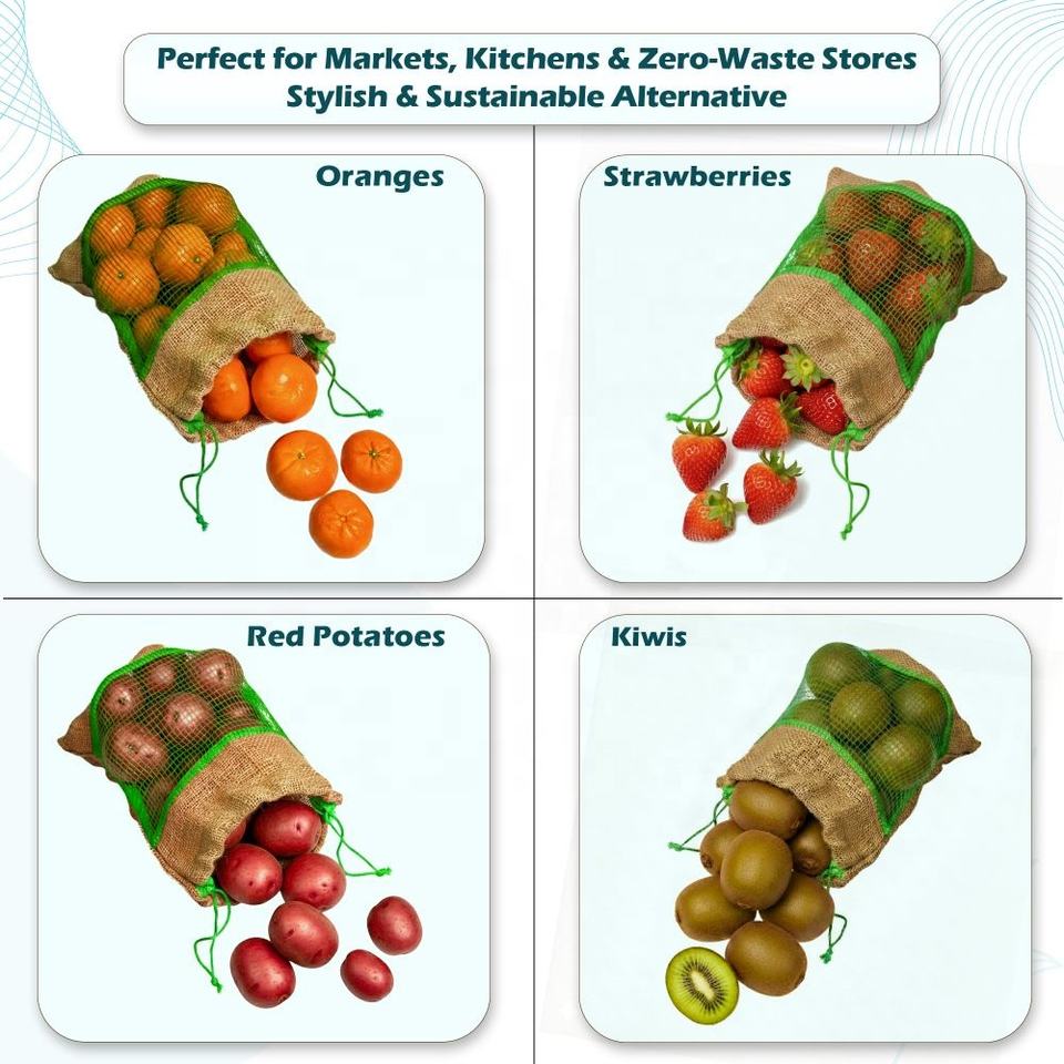 Bolsa de Malla de Yute Biodegradable y Ecológica, Resistente, con Cordón, 30x28cm, Transpirable, Reutilizable, para Almacenamiento de Alimentos, Frutas y Verduras, 3KG