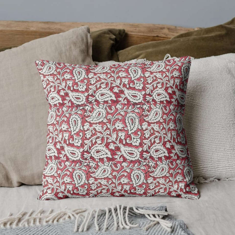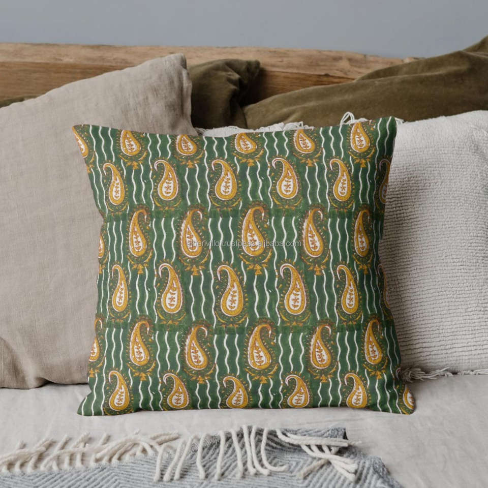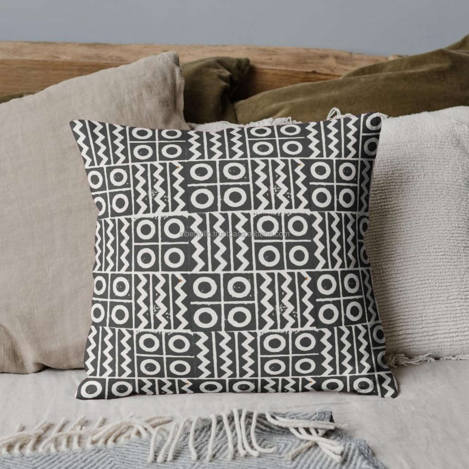Nombre del producto:Fundas de almohada estampadas a mano con bloques